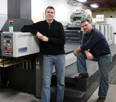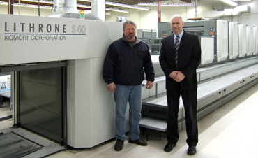 Matt McKenzie, left, and Bill George, with the new Komori press.