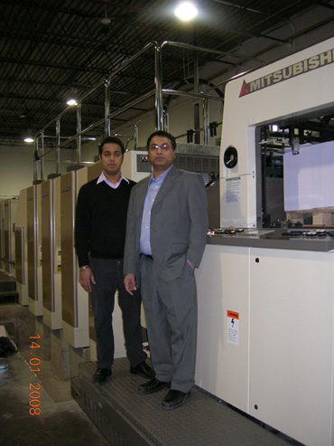 With the new Tandem Perfector press are Robbie Dhanju, left and Pal Dhanju, vice president and president of Millenium Printing.