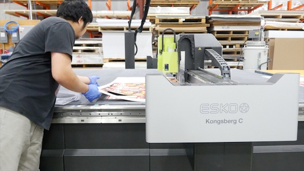The company has also invested in two Esko Kongsberg C64 finishing tables to keep up with its new press. One of the tables has been outfitted with automation on the front end, the other with a router and an adaptor for roll stock. The C64 is a super-wide (126”x126”) digital finisher that produces productivity over ten feet, because of its carbon-composite transverse beam. Esko says its the only super-wide finisher with a 3kW continuous duty high-performance milling unit.