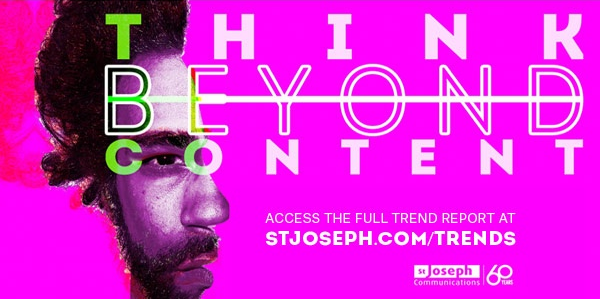 St. Joseph Communications (part of St. Joseph Printing) has come out with a report on consumer brands. " Think Beyond Content" explores Brands that are focusing on how partnerships , technology, transparency and building engaged communities are essential. St. Joe's has come out with several trend reports on the consumer market.