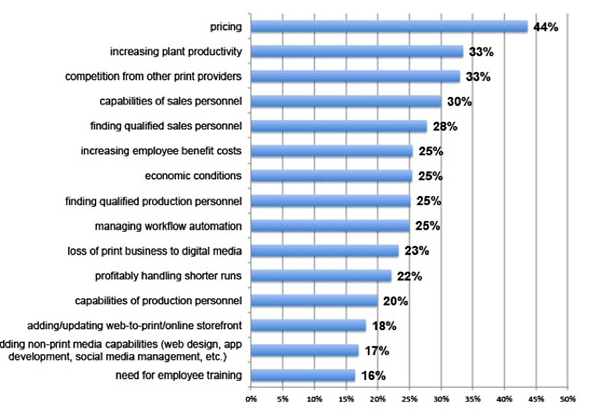 “Competition from other print providers” is now reported by print business owners as their number one challenge, with “increasing plant productivity” a close second.